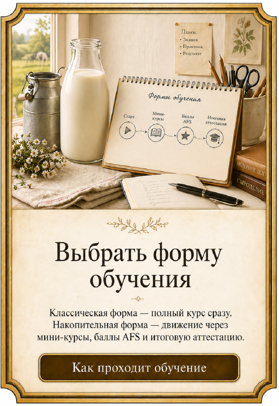Главная особенность AFS-School - обучение, построенное на авторских программах, мастер-классах опытных практиков и консультациях ведущих специалистов. В мастерских школы обучение строится не на формальном пересказе материалов, а на передаче реального опыта, профессиональной логики и выверенных авторских решений. Такой подход позволяет соединить системность образовательного материала, профессиональный опыт и индивидуальную экспертную глубину. Здесь знание соединяется с ремеслом, практика с традицией, а обучение становится частью живого профессионального пути.